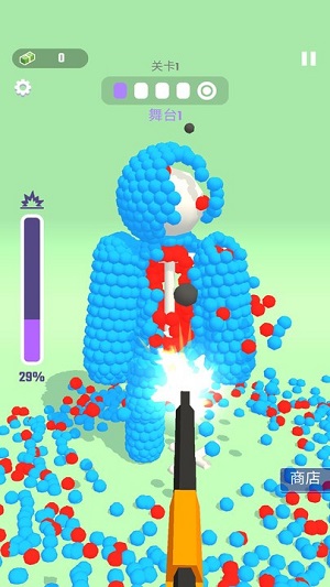 摧毁糖豆人是一个休闲类型的闯关游戏,画面也是非常的干净的,玩家可以在游戏里面自由的选择一个武器道具来使用,需要使用武器来不断的攻击糖豆人,将他们全部消灭就可以完成闯关,操作是非常的简单起来,也是容易上手的。