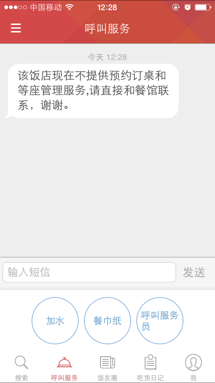 4、接收食客用餐过程中的的呼叫;