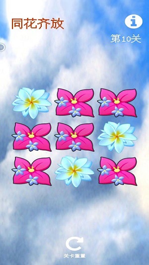 同花齐放是一个趣味性的手机题材游戏,在游戏里面玩家将要不断的点击花朵,将所有的花朵变成同一个颜色就可以完成闯关了,是一个非常有趣的游戏,可以随时的考验到我们的智力表现,发挥自己的聪明才智就可以轻松的完成关卡的闯关了。