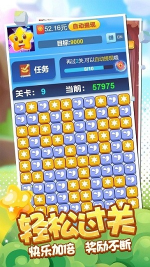 钻石削削乐是一个趣味性的游戏,在游戏里面的画面也是非常的精致的,游戏的玩法也是非常的简单起来,让我们可以轻松的操作在游戏里面随手的消除更多的星星,在这里只需要来轻轻的点击就可以,移动相同的颜色图形就可以完成消除了,快速的完成关卡的闯关任务。