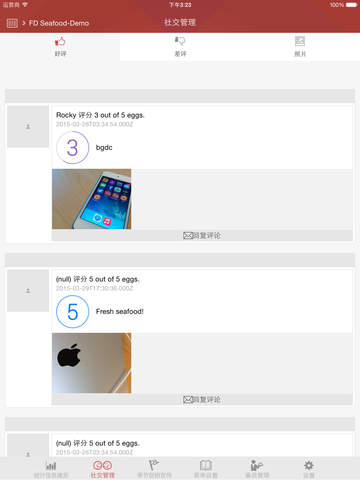 此应用专门为餐厅主人提供服务,包括社交媒体用户的交互,以及菜单的管理操作。