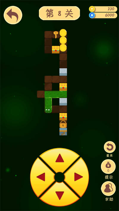 -在每个关卡中都会有一个苹果,玩家需要吃掉其中的苹果才能完成任务;