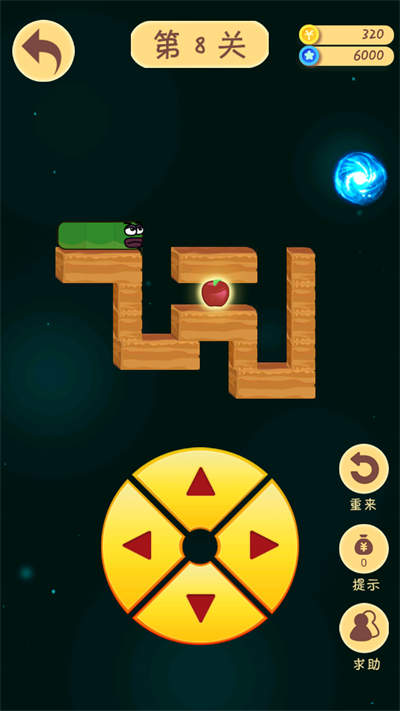 -控制变种蛇吃所有你能吃的苹果,在吃完所有苹果后你需要从黑洞中逃脱;