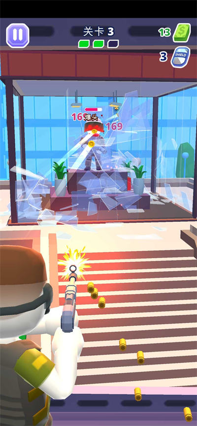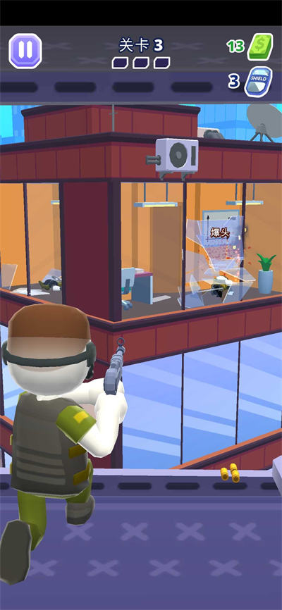 从各个角度进行工作,在塔楼层,直升机在高层建筑的楼层上盘旋,你必须通过窗户消灭多个敌人;