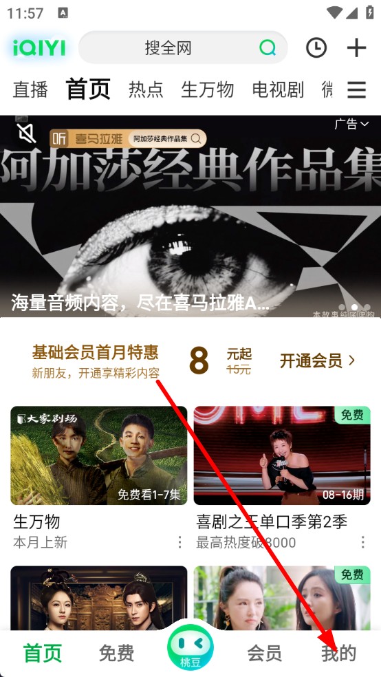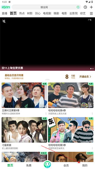 1、启动爱奇艺APP,进入时点击导航栏中我的按钮。