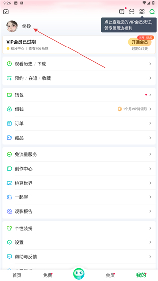 2、进入我的页面内,点击用户昵称的区域位置。