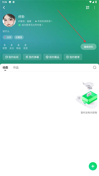 3、进入个人资料的页面内,点击右侧编辑资料的按钮。