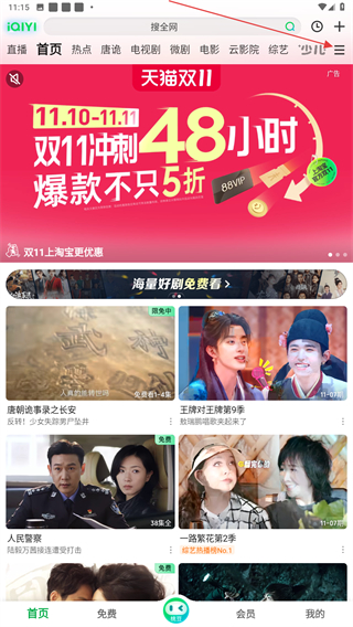 1、打开爱奇艺APP,进入时点击右上三个横线图标。