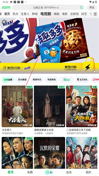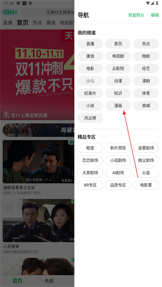 1、打开爱奇艺APP,进入首页点击电视剧的标签。