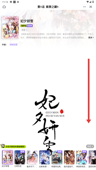4、进入漫画详情页面内,向下滑动可开始进行观看。