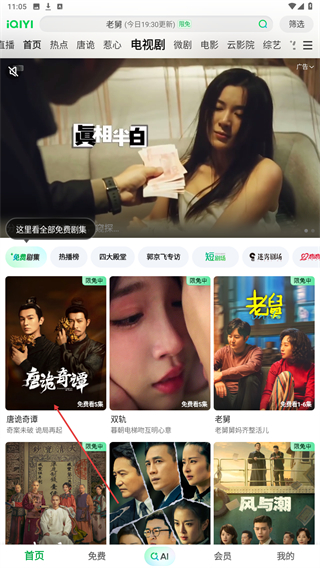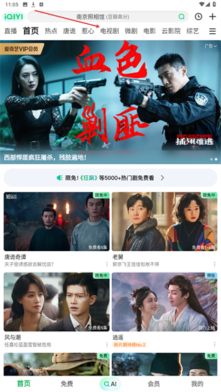 1、打开爱奇艺App,在首页上方点击电视剧的标签。