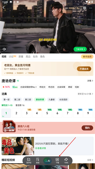 3、进入播放的页面内,点击下方下载的功能按钮。