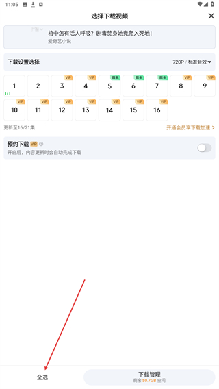 4、在选择下载的页面内,点击全选的按钮即可开始下载。