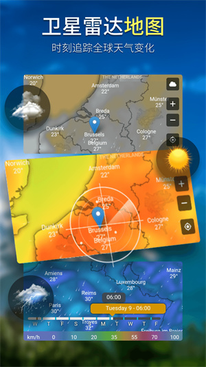 3、本地天气雷达:在您的主屏幕上查看实时雷达地图,以快速查看您所在位置的当前天气;