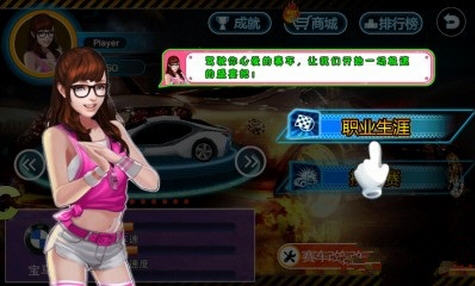 游戏中加入了职业生涯和挑战赛,点击即可进入,而点击左方车辆左右方的箭头即可切换新车,点击赛车改装进行车辆强化,道具升级来强化各种道具的时间延长等等!