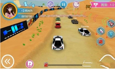 游戏中点击左右下方的按钮来控制车辆左右移动!同时也操控的漂移操作!
