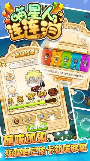 喵星人连连消是一款以策略、消除为核心的休闲类手机游戏,游戏方式采用7*7的格子地图,再配以英雄和妖怪,画面清新、操作方便、玩法丰富有趣。