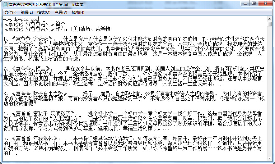 富爸爸穷爸爸是一款讲述金钱观和财富观的书刊。该版本是绿色资源网小编精心准备的,收集了穷爸爸富爸爸小说全10册,下载后打开即可观看!喜欢的朋友,赶快下载体验吧!