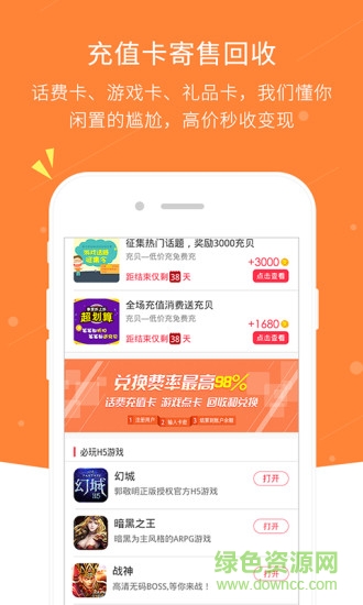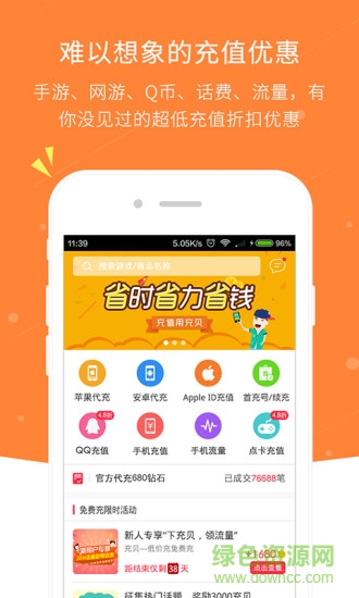 充贝app是一款全方位的充值服务手机软件,不仅可以进行手游充值,还可以进行话费、流量等充值,并且折扣多多,欢迎喜爱的朋友到绿色资源网下载体验!