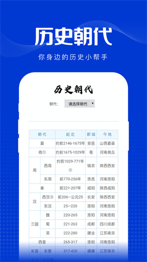 - 历史朝代信息在线查询,做大家手机上的历史小帮手,随时随地在线查询,了解每个朝代各个事件。