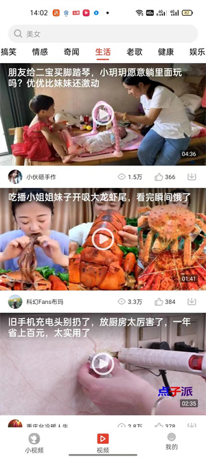- 包含的短视频类型也非常的丰富,各种搞笑、影视、生活、情感、音乐、健康、娱乐等多种类型资源;