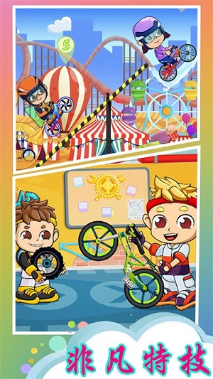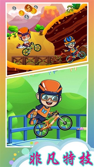在游戏里面我们将驾驶自己的自行车去在不同的赛道里面进行个竞速比赛,去不断的躲避各种的障碍物快速的得到目的地获得第一名,来赢得一个比赛的胜利,可以在路上不断的使用各种的特技出来,展示出一个表演在里面,为我们带来了更多的游戏乐趣。