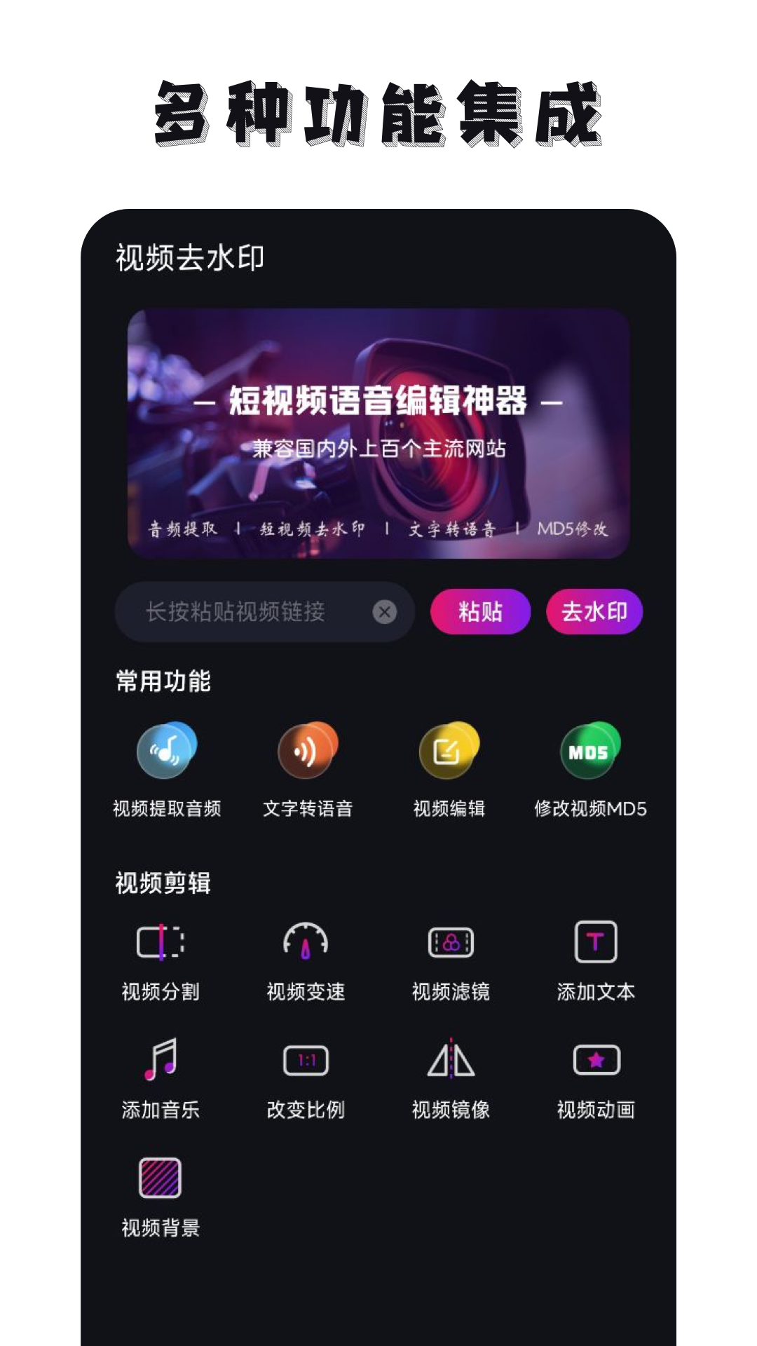 免费去水印神器是一个非常好用的修图工具,在软件里面我们可以不仅仅帮助大家去除图片或者视频里面的水印,也能够添加到不同的风格滤镜来为我们使用,还拥有着大量的视频剪辑功能,可以帮助我们将文字转换成为语音,添加到了不同的特效风格,自由的更换背景的音乐。
