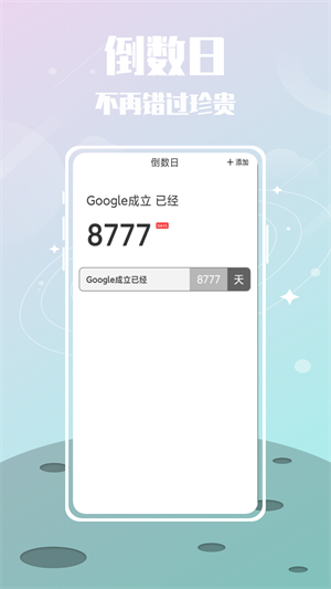 - 新建倒数日提醒,根据设置开启倒数日显示,看到距离指定日期的天数,已过去、预计到来的天数显示;