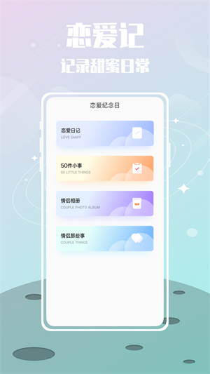 1、【恋爱纪念日】恋爱日记,小事打卡,相册记录和那些事的相关描述,让你记住你们之间的甜蜜;