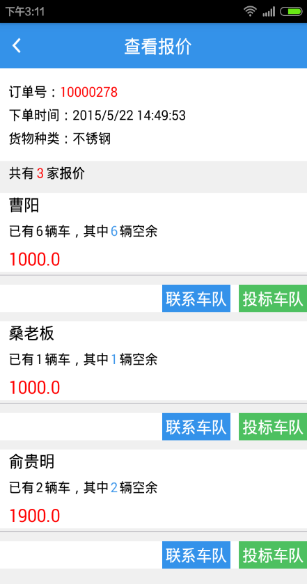 3.便捷:一个APP全程适用,只需要一部手机一个APP,即可完成注册、认证、订单发布、投标等多项步骤。只需要发布订单,就可以直接坐在家里等车主报价,大大节约了时间与精力。