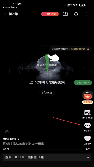 2、在播放页面右侧,点击评论图标,进入评论区界面。