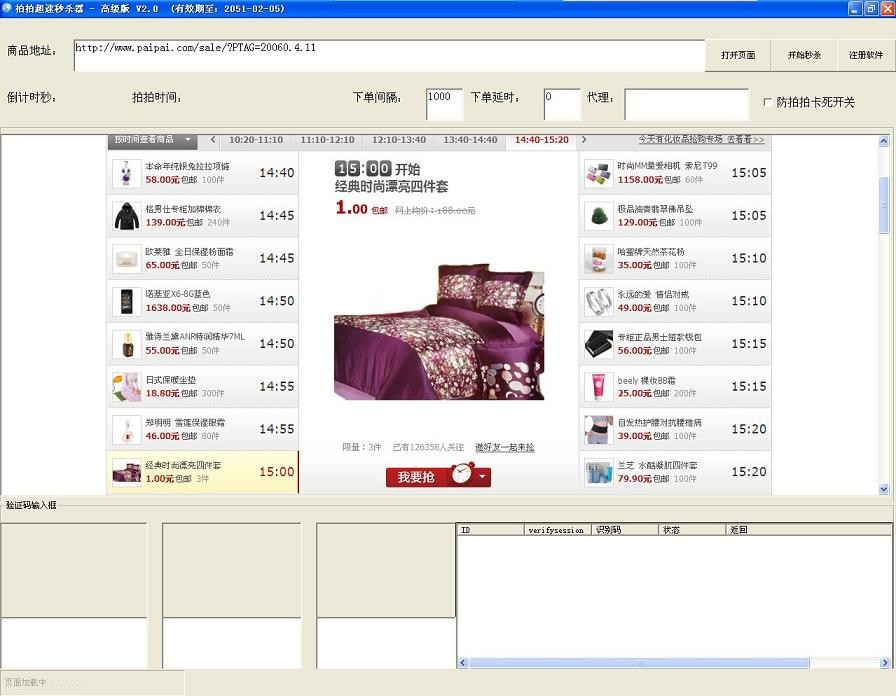 超速秒杀器是一款超好用的拍拍秒杀工具,或者说是抢拍器。软件支持秒杀抢拍拍拍网三分之二的商品,基本数码产品全部都是使用超速秒杀器所得。软件还支持凡客的秒杀。使用该软件最大的特点在于,不管你开多少、不管你电脑有多烂、不管有多少人抢只要你开防卡功能键,数据一样照发无误,大大提高了性能比。软件界面上会显示商品开抢的倒计时,并且时时关注,只要时间一到,软件会触发N个线程,并同时发出抢购请求,大大提高了成功率。赶快下载体验吧!
