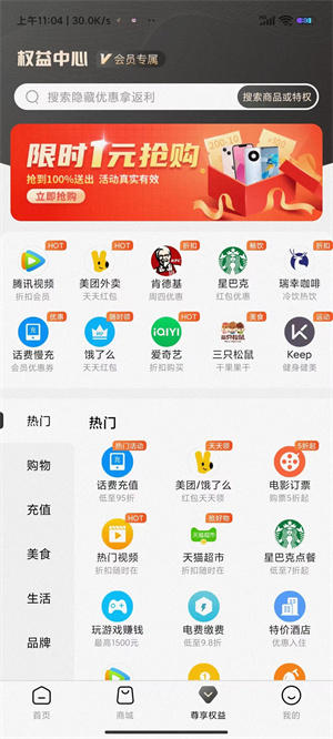 - 会员可享全国超万家大型商超购物8折起、全国加油7折起、热门电商平台专属4折起、大牌美食餐饮5折起等特权;