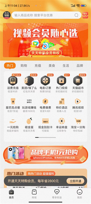 天天特购app是一款非常简单的在线领优惠券购物的软件,用户可以非常直接的在线买到自己喜欢的各种类型的商品,还有很多的商品优惠券也是可以免费的直接进行使用,大家在这里的购物也可以更省钱,还有更多的生活服务项目都可以使用优惠。