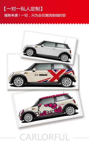 车非常色app是以款汽车美容平台,通过大数据化的营销理念,国际最专业的车身改色咨询、设计师为你打造个性化的汽车美容服务,让爱车外观随心而变,狂野浪漫萌物风,朋克暗黑小清新,时尚元素一手掌握!让你的车非常色!