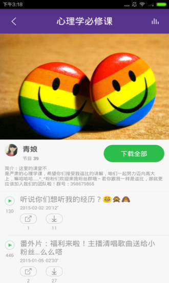 学点心理学app是一款心理学咨询文章阅读应用,有了这款应用你就可以每天得到心理疑惑的解答。心理学是将精神功能和行为的科学,与其说心理学是一门理论学科,倒不如说心理学是一门应用科学更加贴切。包括基础心理学与应用心理学两大领域。 清晨起床,梳妆打扮好,公交地铁上看看每天懂一点心理学,带给自己一天的好心情喔!相信这款软件对你有所帮助,让你每天好心情,以最好的心态面对生活!