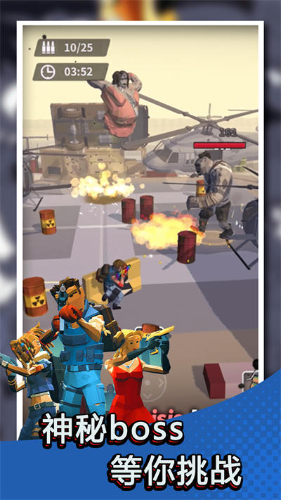丰富的武器和关卡,多人在线生存战,使用各种大型的武器进行战斗;