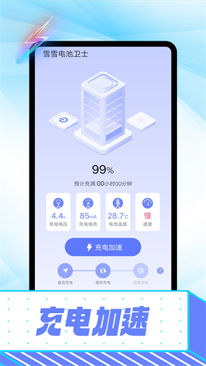 - 提供了快速充电、持续充电和涓流充电等三个阶段的充电加速功能,可以让用户更轻松的管理自己的手机电池;