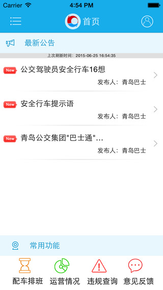 青岛巴士通为青岛公交司机提供了方便的公交工作查询事宜。司机通过登录帐号,可以方便的查询自己某年某月的薪资详情,车辆的违规情况,维修查询,工作安排情况以及公司的通告与制度等等,大大方便了公交公司和公交司机的工作安排情况。