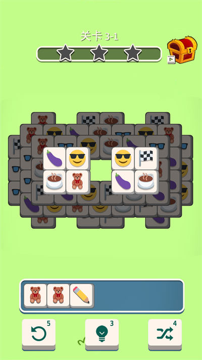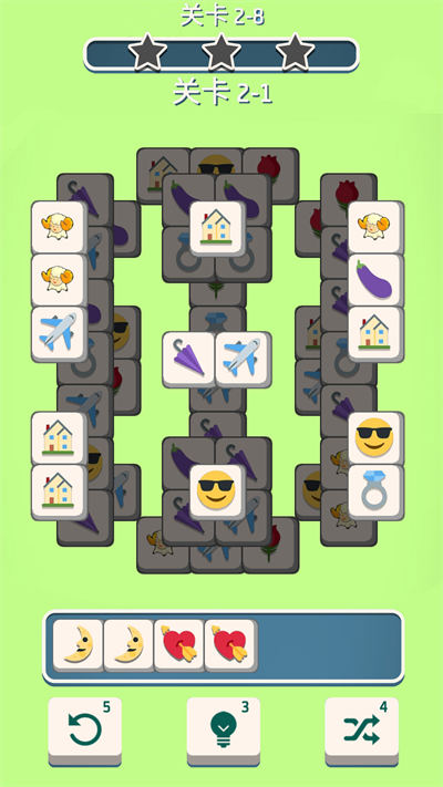 2、如果所有方块都匹配,玩家可以通过当前级别,益智游戏包括许多级别;