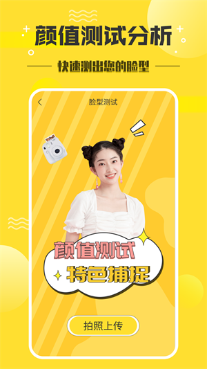 1、选择或者现场拍摄一张正脸照即可测脸型,脸型自动识别;