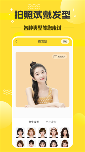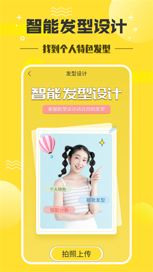 - 用户可以用手机拍照试发型、换发型、发型设计,一张自拍即可测脸型配发型,智能的设计最合适你的发型;