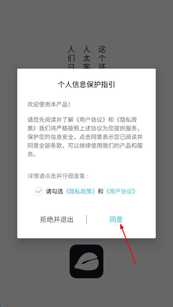 1、打开木鱼类软件,在弹出的个人信息保护指引弹窗中,点击“同意”按钮,进入软件首页。