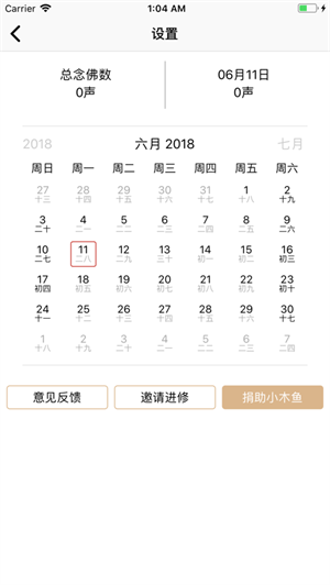 小木鱼iOS方便用户可以非常简单的在线设置各种木鱼相关的功能,可以设置自动计数的时间以及数量、间隔时间等操作,也是非常简单就可以操作完成,根据自己的需要直接在线进行设置就可以了,也是没有任何的难度。