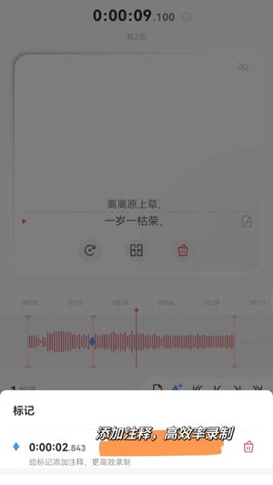 1、在标记处进行一个添加文字说明,可以更好的让我们来理解录音的内容;