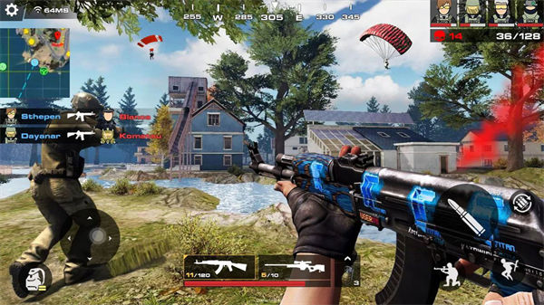 跳伞落地开始作战,成为超级吃鸡精英,在紧张刺激的战场上挑战生存3分钟,利用地形和武器击败全部的敌人取胜,来游戏里展现你的超强枪法走位吧,和你的朋友们一决高下。