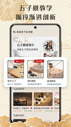五子棋大侠是一个非常方便也好玩的手机五子棋模拟教学管理服务平台,在里面我们随时都可以去进行一个五子棋的玩耍和模拟教学,在软件里面也拥有着大量的课程和内容来让我们学习起来,随时随地的都可以观看到,各种的五子棋的模拟技巧练习,带来了各种的课程详细解读。