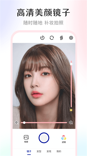 - 化妆镜子相机,支持读秒自拍、多种滤镜风格,高清镜子还原你的脸部细节,提供了自动美颜的功能协助你更好的拍摄;