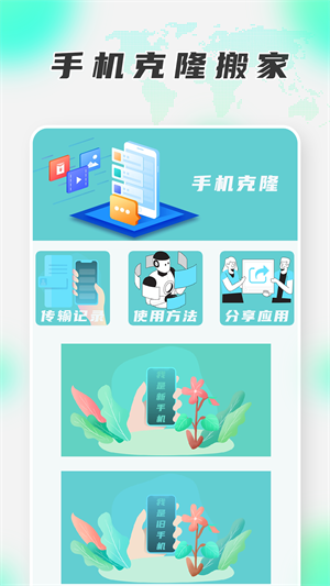 换机克隆助手是一款非常简单的帮助用户进行手机搬家服务的应用,这款软件的使用方式是非常简单的,大家都是可以轻松的进行操作来完成自己需要搬家的内容,使用软件迁移文件是需要旧手机和新手机同时下载这款添加的。