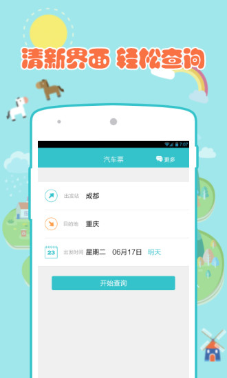 7.用户可在手机上实时查询汽车的时间信息,方便选择合适车次,并在软件的引导下轻松实现车票预订操作。